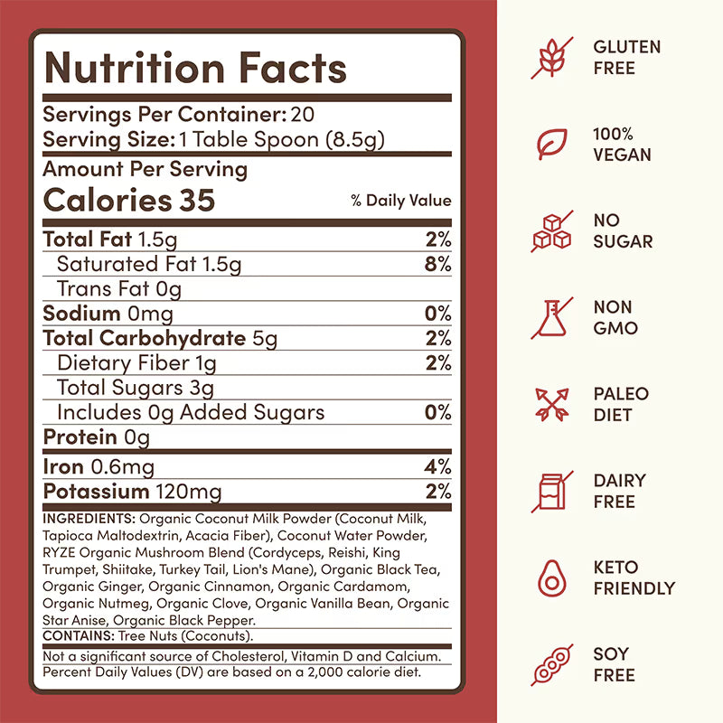 Yes! RYZE Mushroom Chai contains 1000mg (per serving) of our proprietary 6-mushroom blend, including Reishi, Lion’s Mane, King Trumpet , Shiitake, Turkey Tail, and Cordyceps.